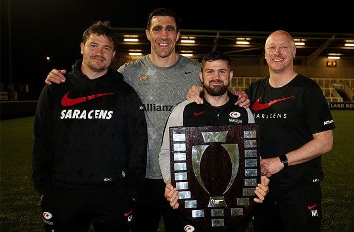Les Saracens, l’un des nombreux clubs londoniens, installé à Watford, partageant le stade de Vicarage Road avec le club de football local. Son ambition ? la même que nous… Ses moyens ? une phalange de néo-internationaux anglais, quelques anciens all-white des + aguerris et une cohorte de sud-africains venant chaque année garnir un peu plus la colonie Sara-Boks.