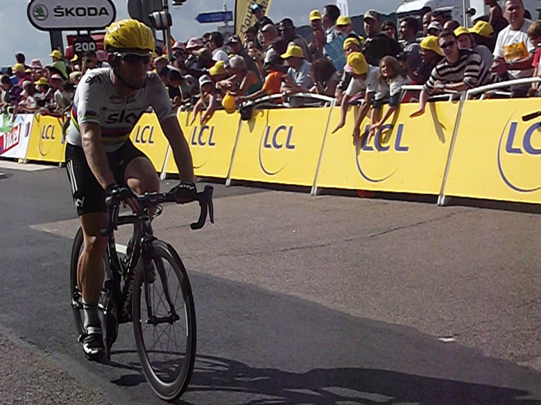 Il y a eu une grande clameur lorsque la foule a vu la chute sur l'écran géant, avant que les images ne nous rappellent des lieux familiers. Greipel a été tellement bien emmené qu'à 200m de la fin, nous avions compris qu'il allait gagner. Nous avons reconnu Wiggins, Hinault, Franck Schleck, Dumoulin, Taaramae et Cavendish (arrivé tout seul sous les applaudissements moqueurs du public) parmi les attardés.
