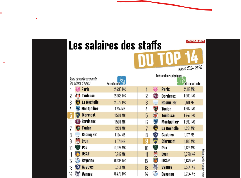 C’est quand même fort de café de faire d Urios l’un des 3 plus gros salaires des entraîneurs du top 14 au vue des piètres résultats depuis 40 mois…