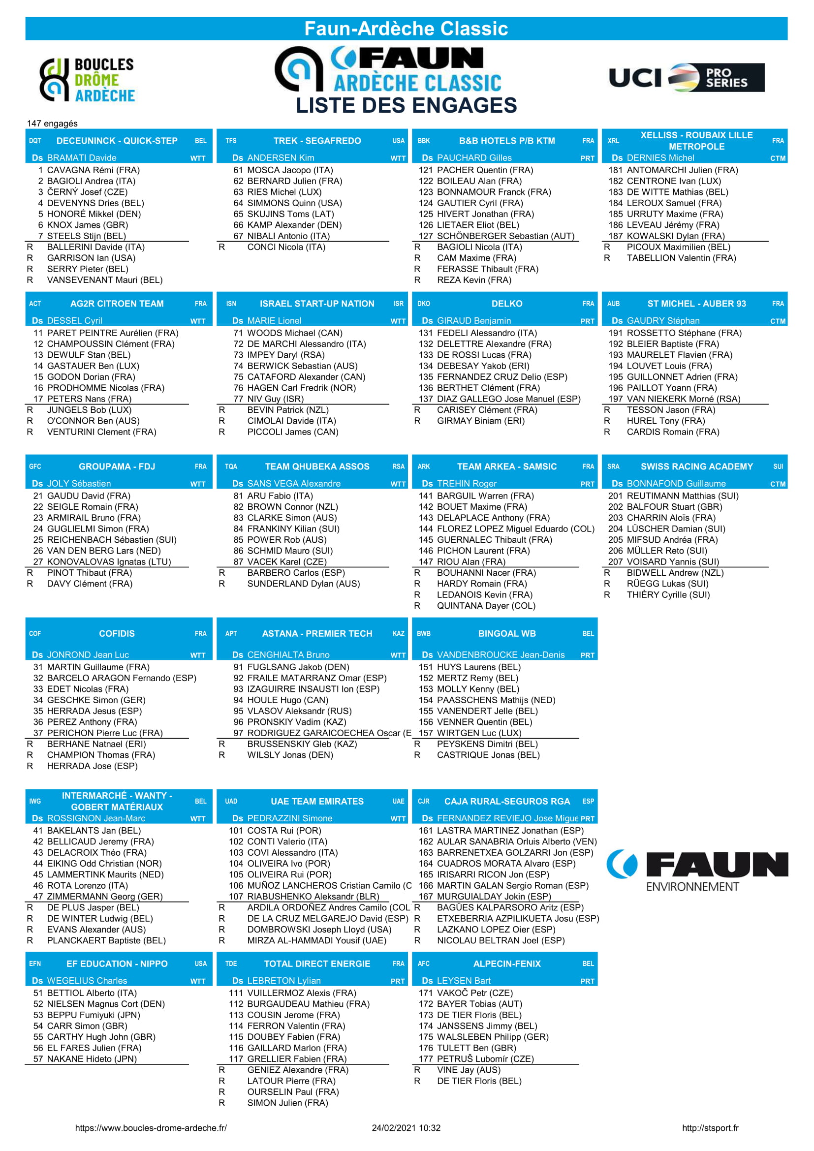 Mads Pedersen, Kasper Asgreen, Davide Ballerini, Florian Sénéchal, Philippe Gilbert, Tim Wellens, Oliver Naesen, Dylan Teuns, Nils Politt, Christophe Laporte, Stefan Küng, Tiejs Benoot, Soren Kragh Andersen, Matteo Trentin, Alexander Kristoff, Anthony Turgis